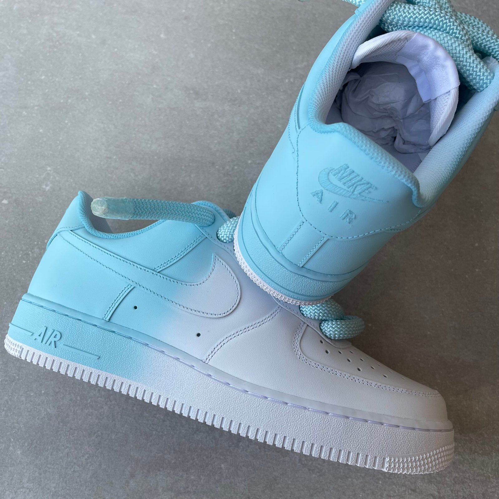 Custom AIR FORCE 1 – Baby blue fade (rope laces 2.0)
