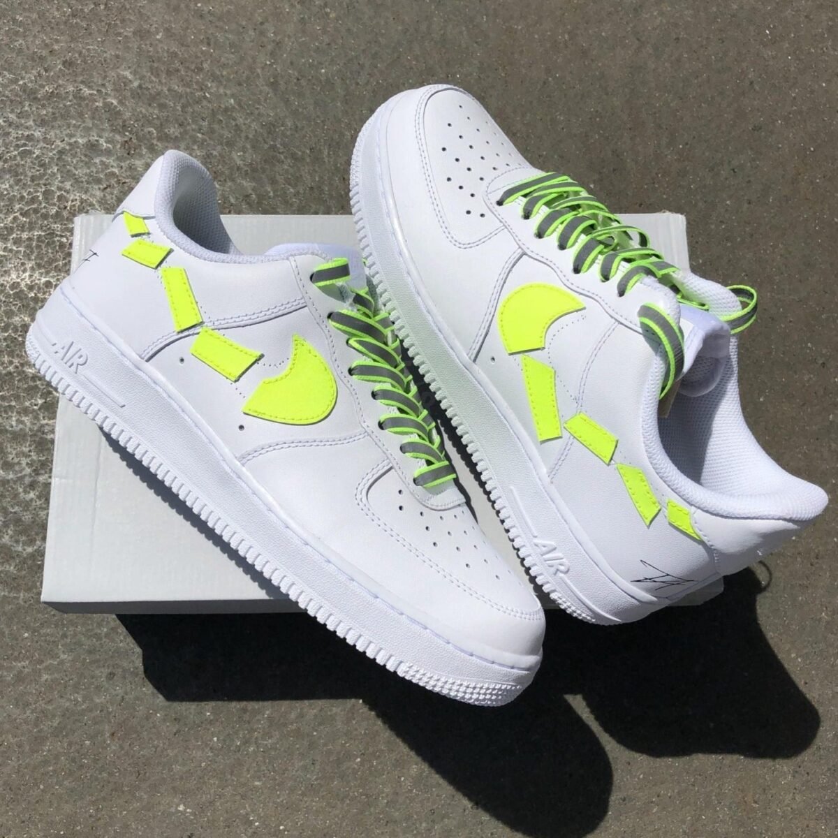 Custom AIR FORCE 1 – Destroyed swooshes (neon yellow)
