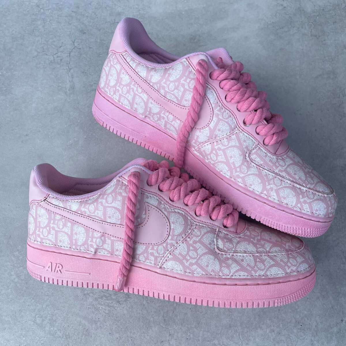 Custom AIR FORCE 1 – Full Christian D pink (rope laces)