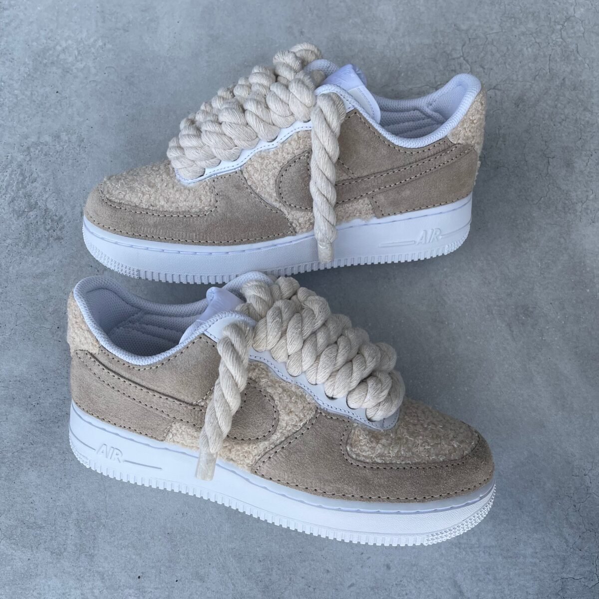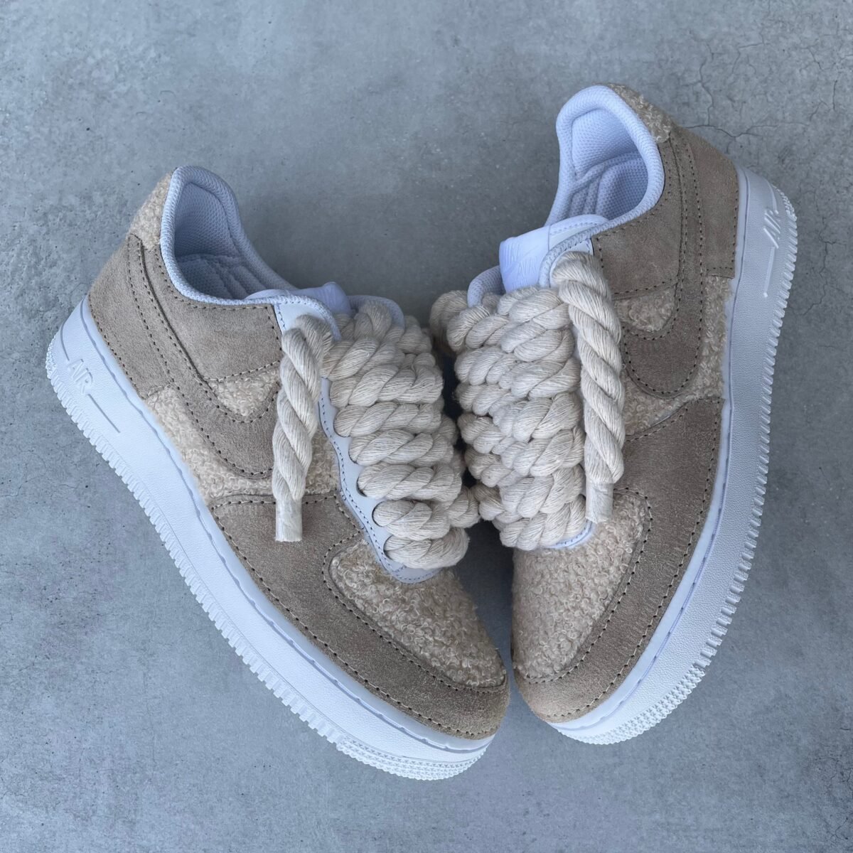 Custom AIR FORCE 1 – Full Suede/Teddy (rope laces)