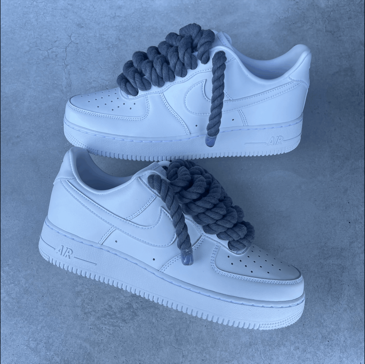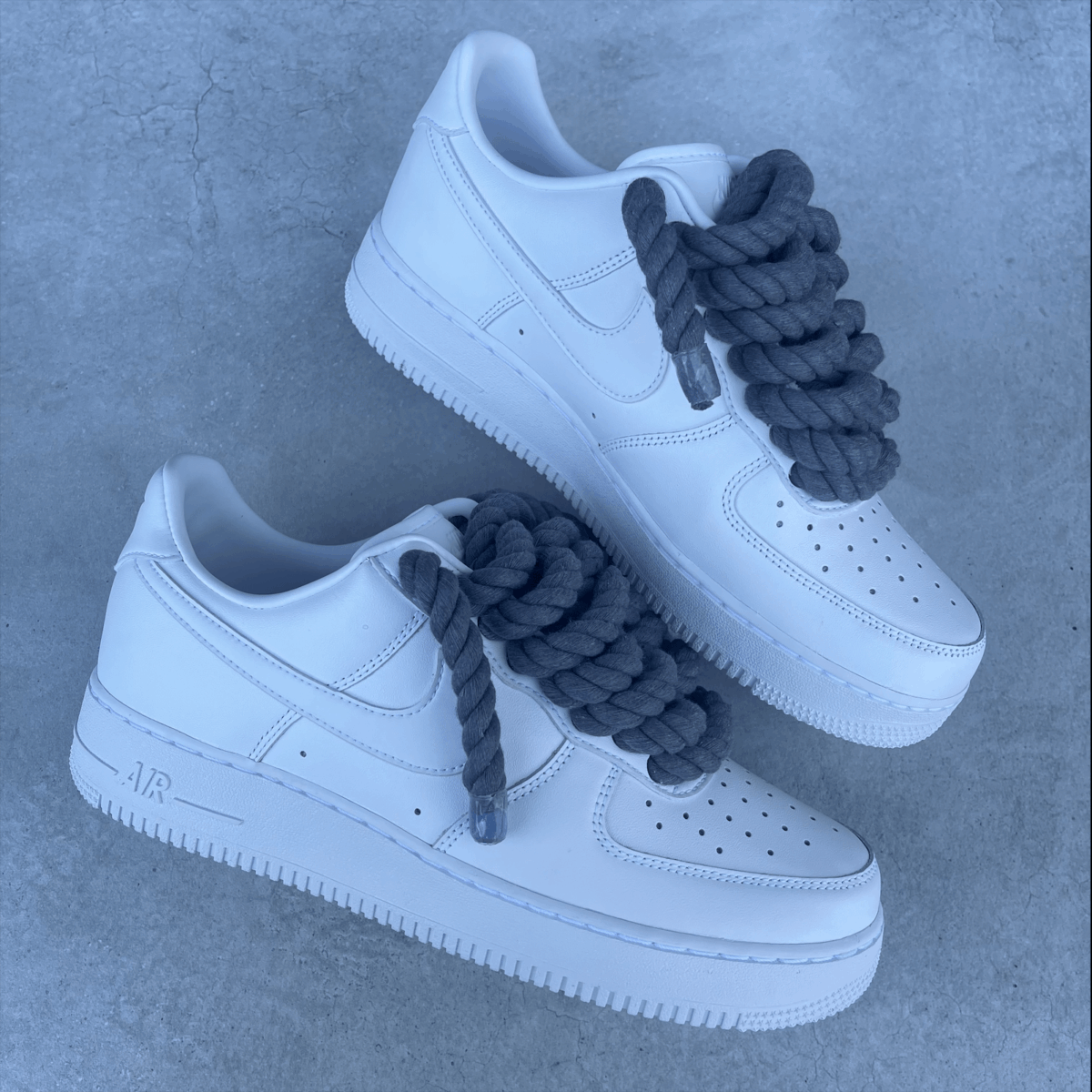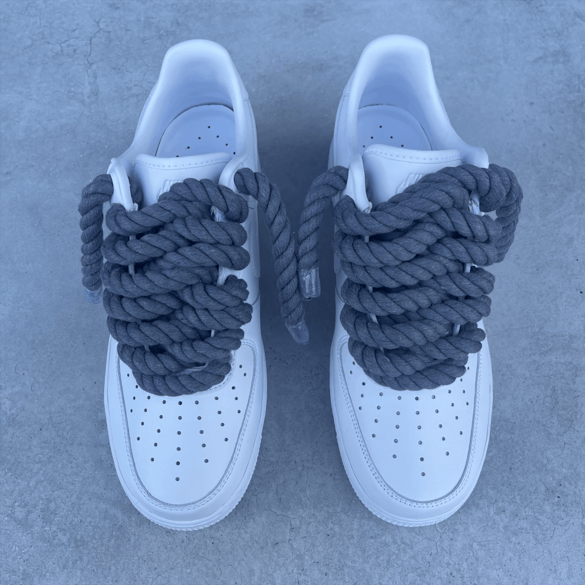 Custom AIR FORCE 1 white with grey rope laces added.