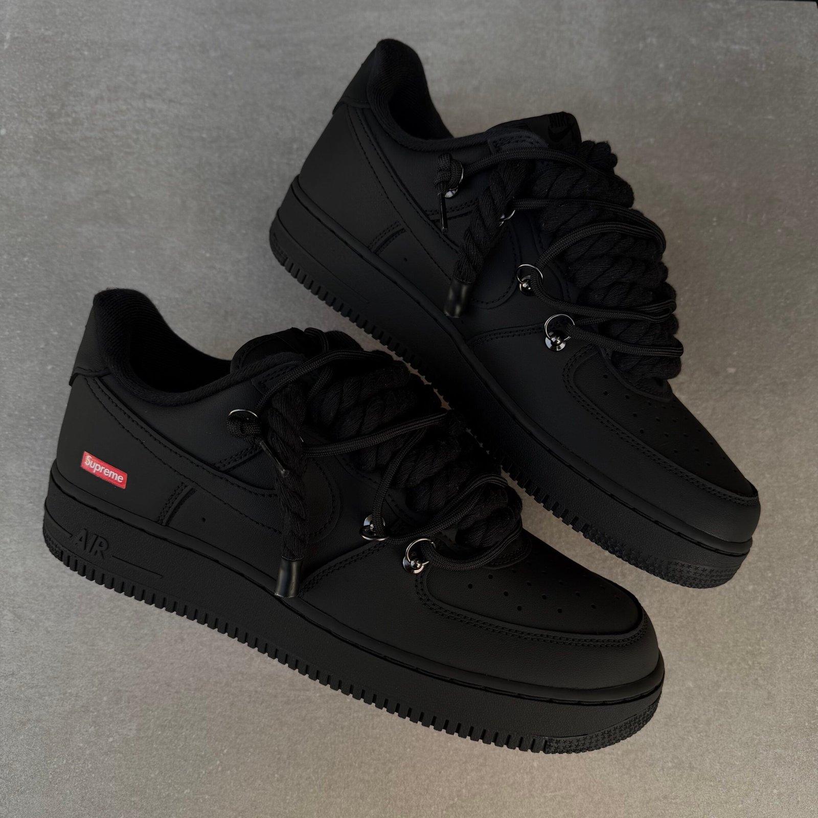 Custom AIR FORCE 1 Supreme – Mattest (rope laces / lot laces / red soles)
