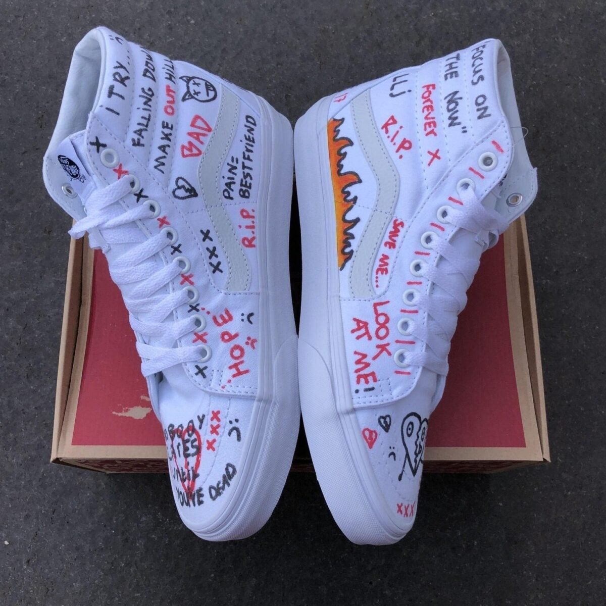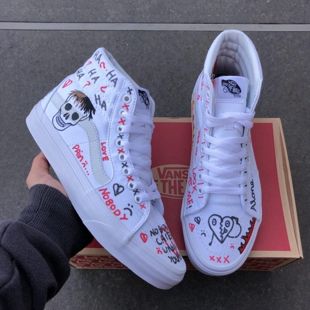 Custom Vans Sk8-hi white XXXTentacion inspired. Painted with the best quality paint in the game. Scratch resistant and 100% waterproof