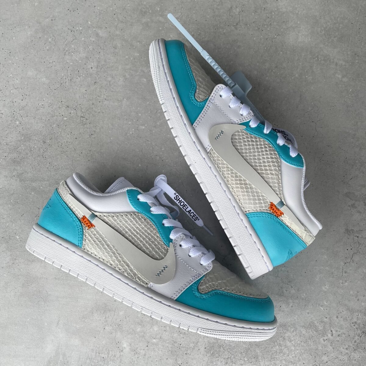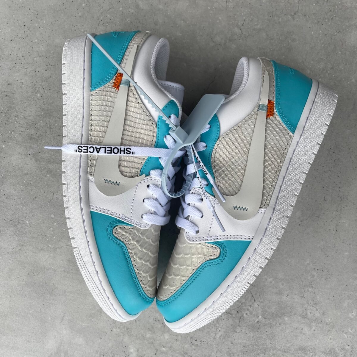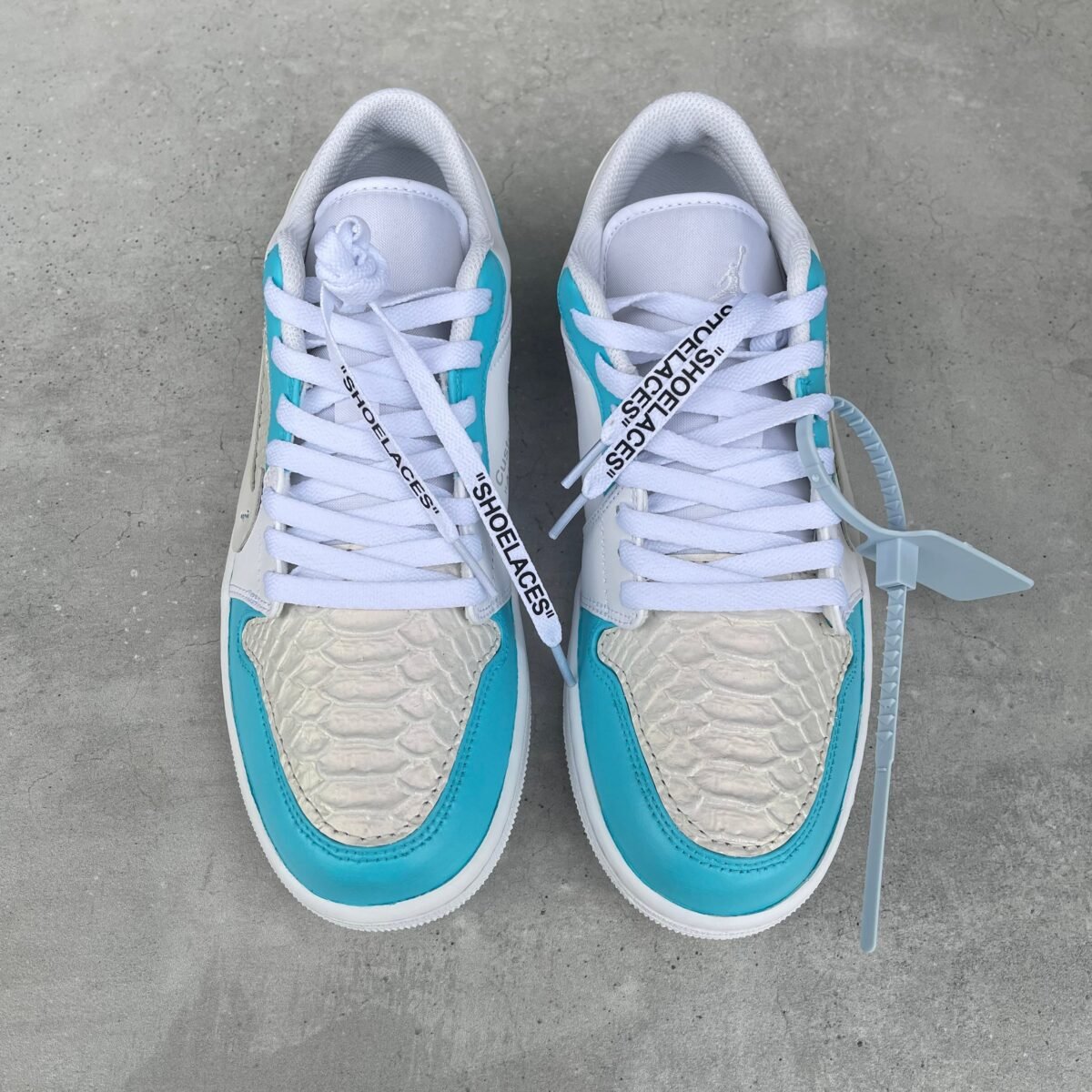 Custom JORDAN 1 – OFF WHITE (baby blue/ python)